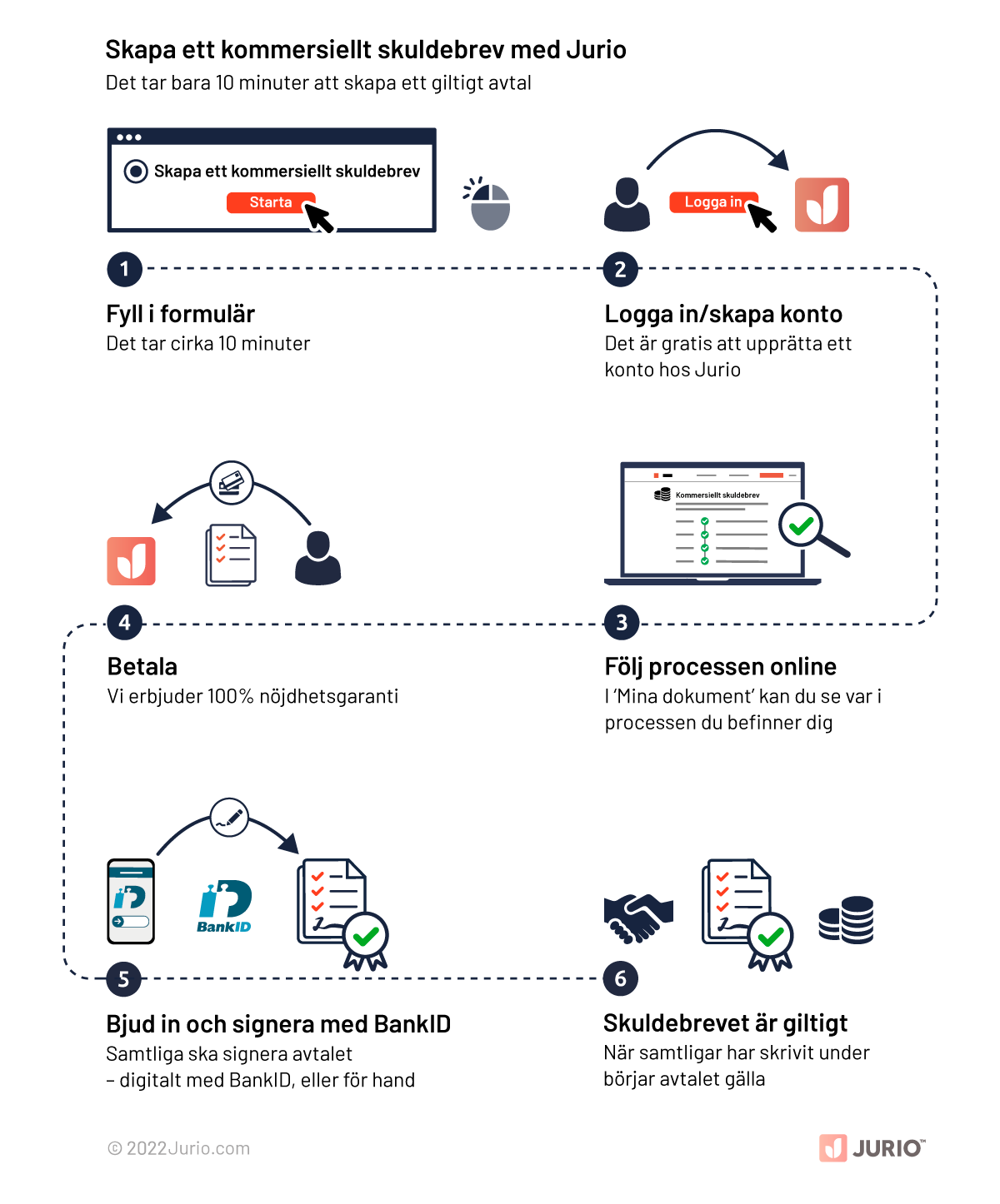 Jurios kommersiella låneavtal tar inte mer än 10 minuter och du får ett skräddarsytt avtal framtaget av jurister i enlighet med svensk lag. Men hur fungerar det?