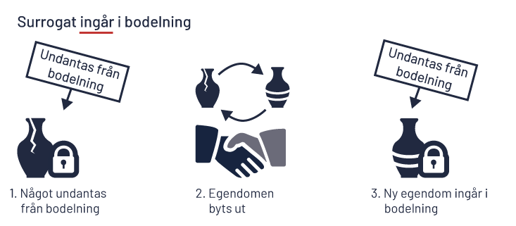Utöver att besluta om existerande samboegendom kan ni välja huruvida även framtida bostad och bohag ska delas lika eller ej. Sådant som ska undantas från bodelning kan dessutom förenas med ett villkor om surrogat. Det innebär att sådant som ni vill undanta från en bodelning kan säljas eller gå sönder och ersättas med någonting annat, som även det kommer att undantas från bodelning vid en eventuell separation.